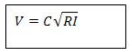 Seperti yang kita ketahui, perhitungan untuk aliran melalui saluran terbuka hanya dapat dilakukan menggunakan rumus empiris, karena ada banyak variabel yang berubah. Untuk alasan ini, rumus empiris berikut disajikan yang banyak digunakan untuk merencanakan saluran terbuka. Chezy mencoba untuk menemukan hubungan bahwa cairan yang melewati saluran terbuka akan menyebabkan tegangan geser (resistensi) pada dinding saluran, dan akan seimbang dengan komponen gravitasi yang bertindak pada cairan dalam arah aliran. Pada aliran seragam, komponen gravitasi dalam arah aliran seimbang dengan resistensi geser, di mana resistensi geser ini bergantung pada kecepatan aliran. Setelah melalui beberapa turunan rumus, maka akan mendapatkan persamaan umum :